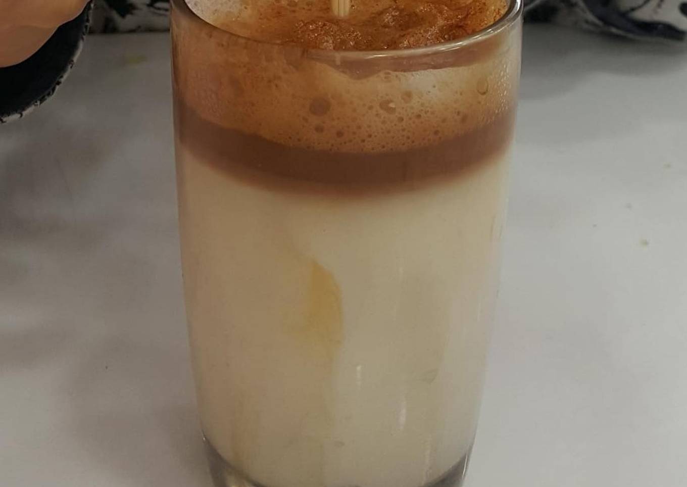- Now add the frothed milk and on top of the condensed milk